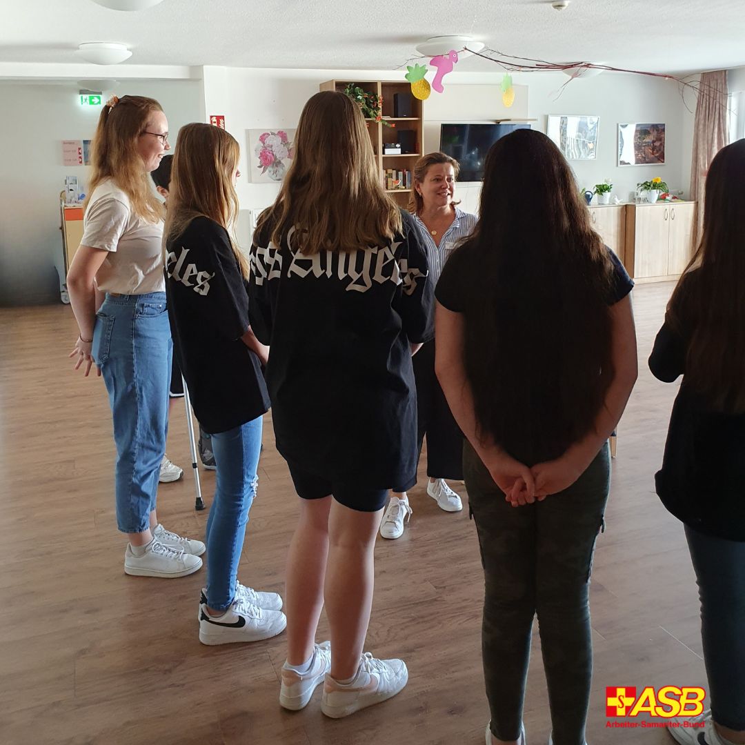 Unter der fachkundigen Anleitung erfahrener Pflege- und Betreuungskräfte des ASB werden die Jugendlichen in Hauswirtschaft und Betreuung der Senior:innen eingeführt. Sie erhalten Einblicke in die täglichen Abläufe und lernen den Umgang mit Senioren, Spiele, Beschäftigungsmöglichkeiten, Essensausgaben usw.